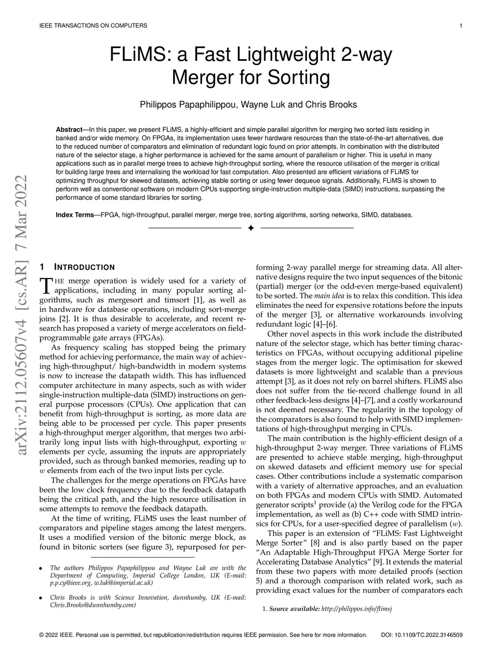 FLiMS: a Fast Lightweight 2-way Merger for Sorting