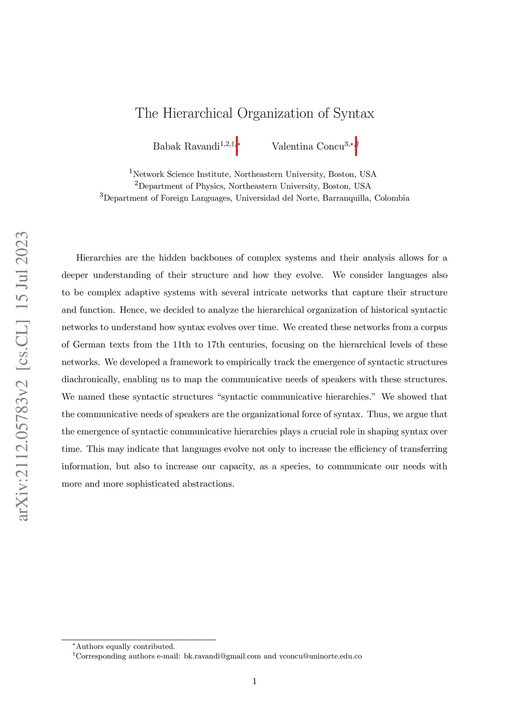The Hierarchical Organization of Syntax