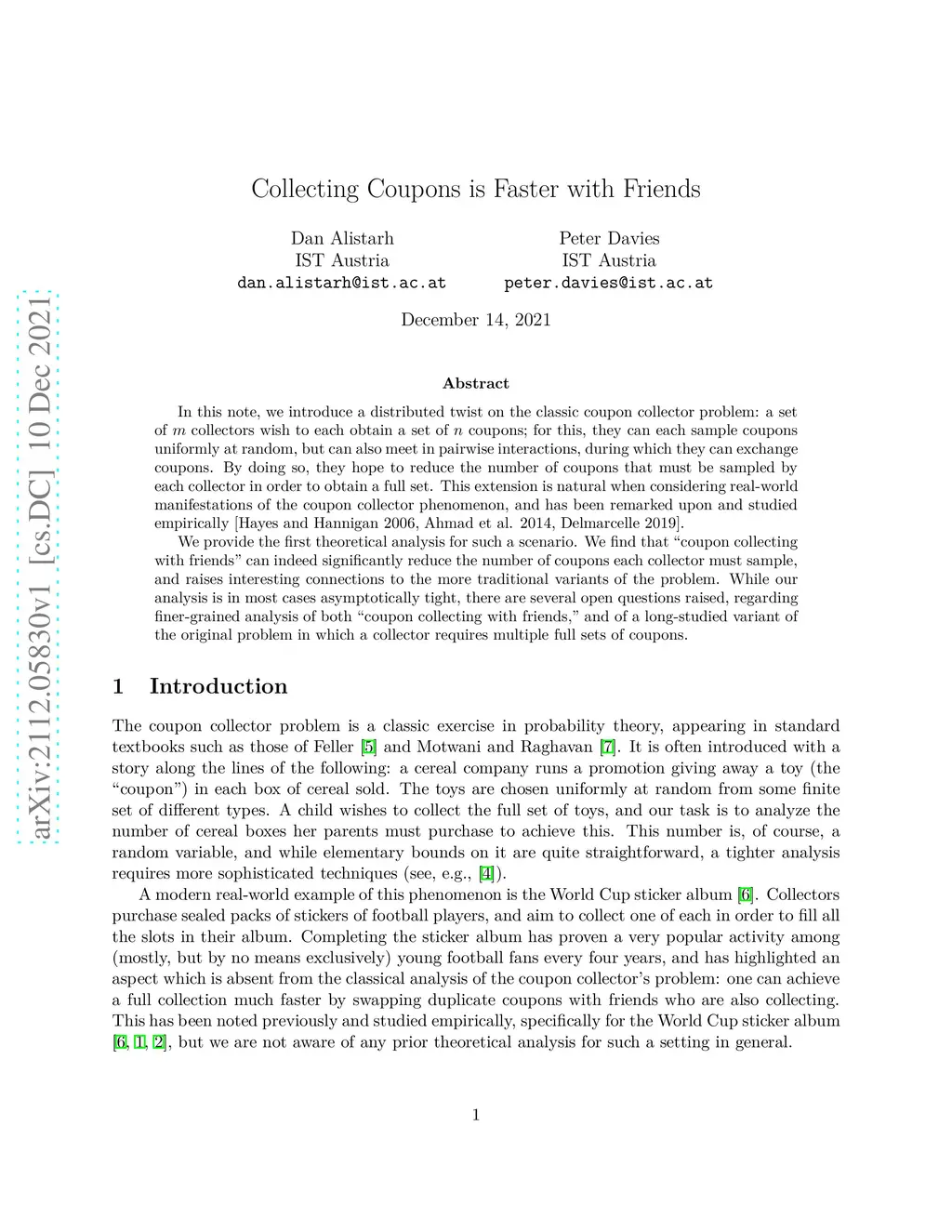 In this note, we introduce a distributed twist on the classic coupon collector problem: a set of collectors wish to each obtain a set of coupons; for this, they can each sample coupons uniformly at random, but can also meet in pairwise interactions, during which they can exchange coupons. By doing so, they hope to reduce the number of coupons that must be sampled by each collector in order to obtain a full set. This extension is natural when considering real-world manifestations of the coupon collector phenomenon, and has been remarked upon and studied empirically [Hayes and Hannigan 2006, Ahmad et al. 2014, Delmarcelle 2019]. We provide the first theoretical analysis for such a scenario. We find that "coupon collecting with friends" can indeed significantly reduce the number of coupons each collector must sample, and raises interesting connections to the more traditional variants of the problem. While our analysis is in most cases asymptotically tight, there are several open questions raised, regarding finer-grained analysis of both "coupon collecting with friends", and of a long-studied variant of the original problem in which a collector requires multiple full sets of coupons.