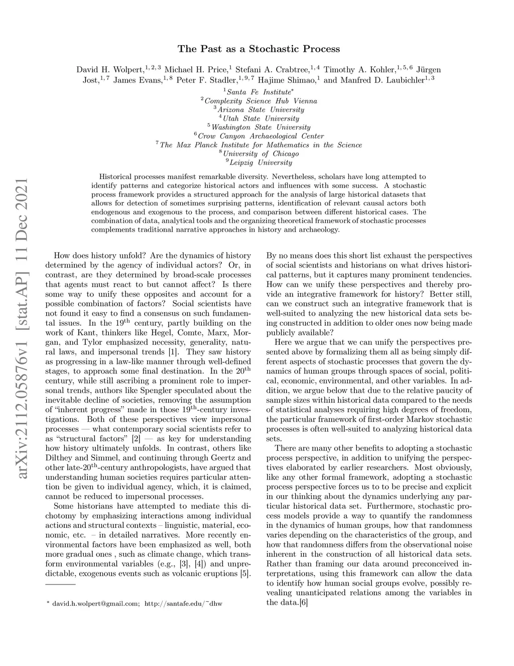 Historical processes manifest remarkable diversity. Nevertheless, scholars have long attempted to identify patterns and categorize historical actors and influences with some success. A stochastic process framework provides a structured approach for the analysis of large historical datasets that allows for detection of sometimes surprising patterns, identification of relevant causal actors both endogenous and exogenous to the process, and comparison between different historical cases. The combination of data, analytical tools and the organizing theoretical framework of stochastic processes complements traditional narrative approaches in history and archaeology.