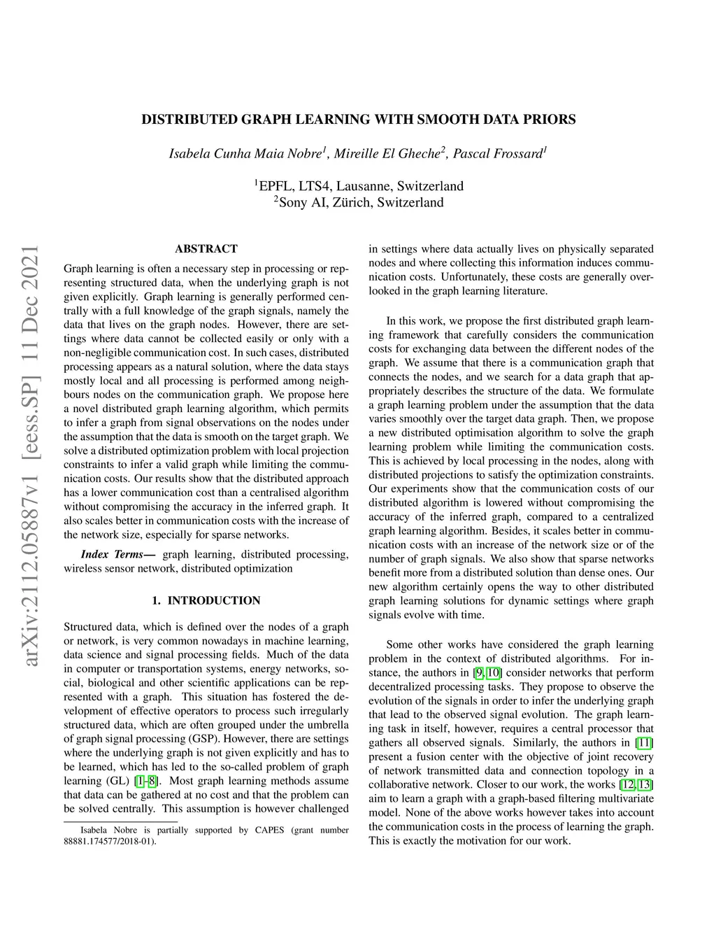 Graph learning is often a necessary step in processing or representing structured data, when the underlying graph is not given explicitly. Graph learning is generally performed centrally with a full knowledge of the graph signals, namely the data that lives on the graph nodes. However, there are settings where data cannot be collected easily or only with a non-negligible communication cost. In such cases, distributed processing appears as a natural solution, where the data stays mostly local and all processing is performed among neighbours nodes on the communication graph. We propose here a novel distributed graph learning algorithm, which permits to infer a graph from signal observations on the nodes under the assumption that the data is smooth on the target graph. We solve a distributed optimization problem with local projection constraints to infer a valid graph while limiting the communication costs. Our results show that the distributed approach has a lower communication cost than a centralised algorithm without compromising the accuracy in the inferred graph. It also scales better in communication costs with the increase of the network size, especially for sparse networks.