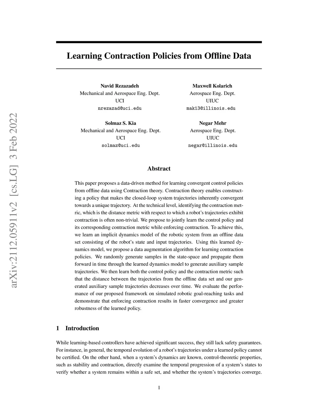 Learning Contraction Policies from Offline Data