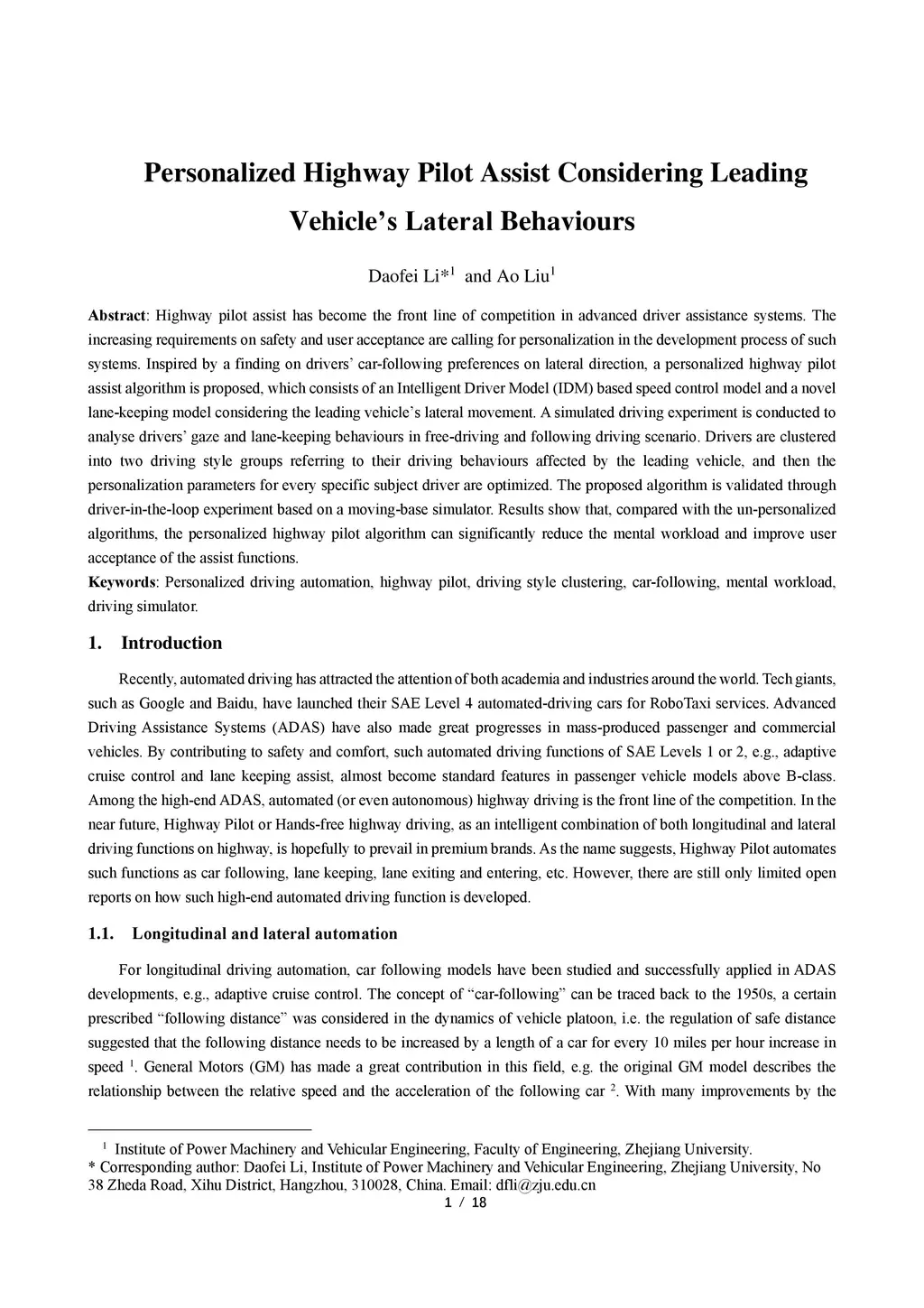 Personalized Highway Pilot Assist Considering Leading Vehicle's Lateral
