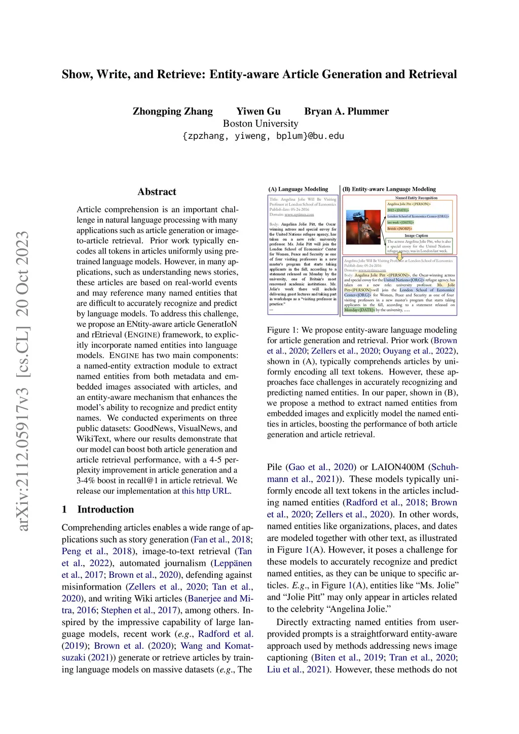 Show, Write, and Retrieve: Entity-aware Article Generation and Retrieval