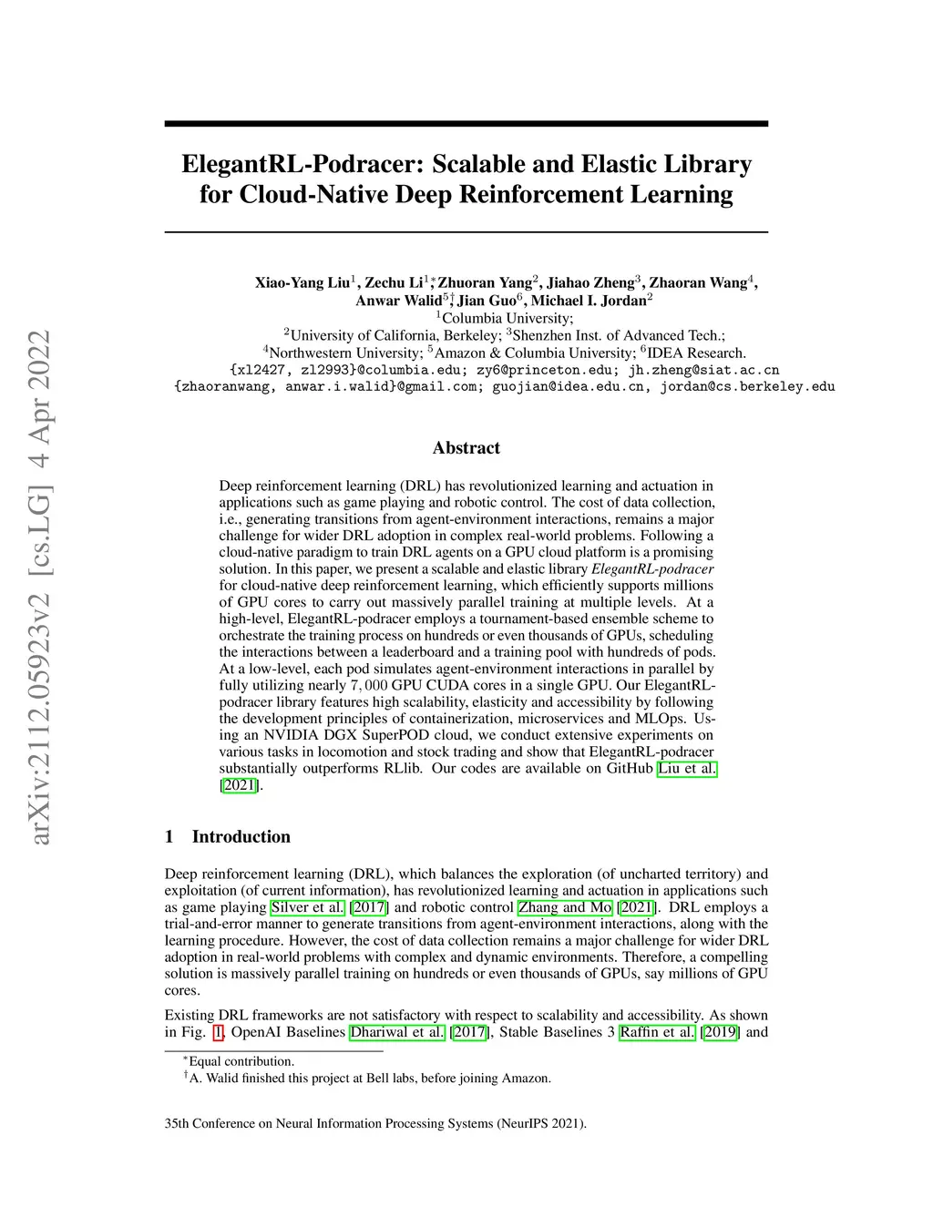 ElegantRL-Podracer: Scalable and Elastic Library for Cloud-Native Deep