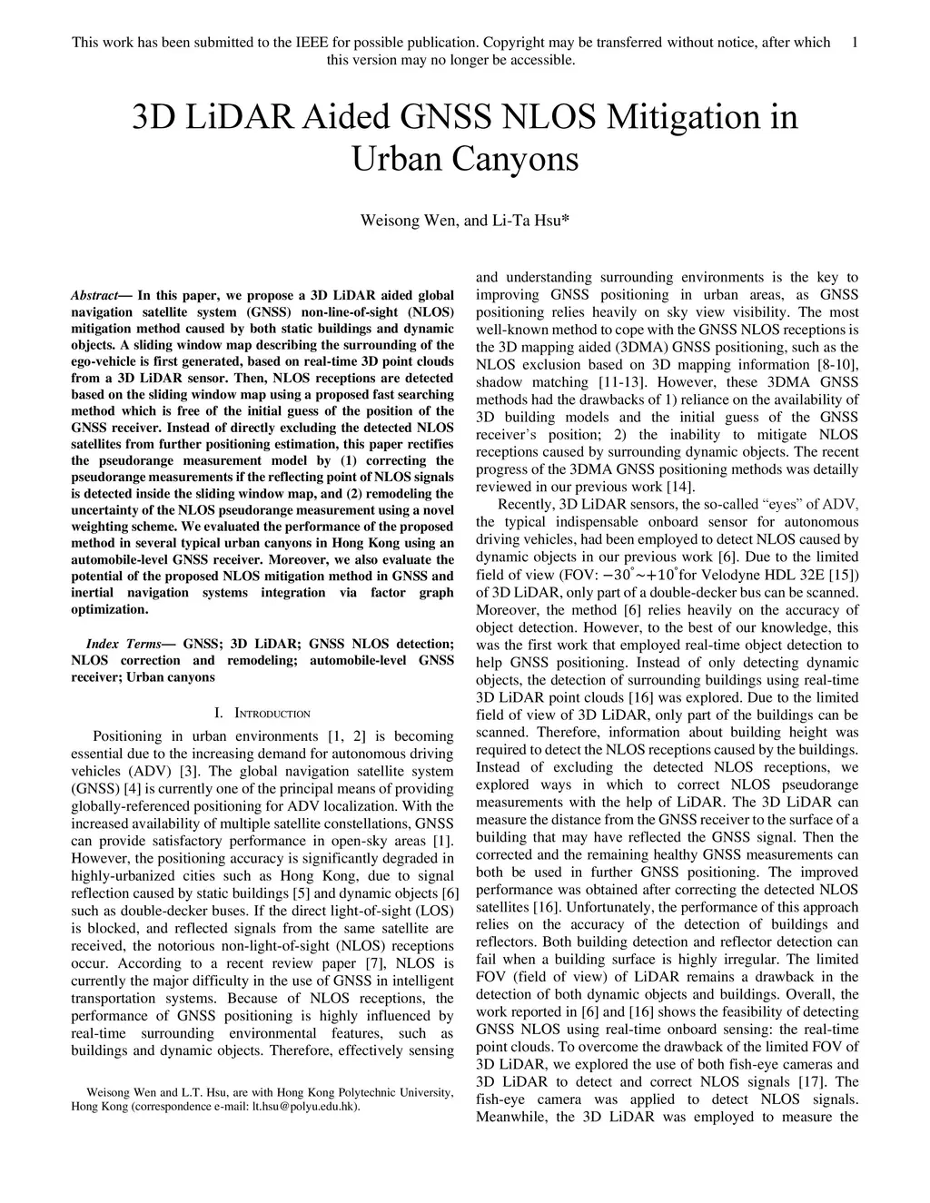 3D LiDAR Aided GNSS NLOS Mitigation in Urban Canyons