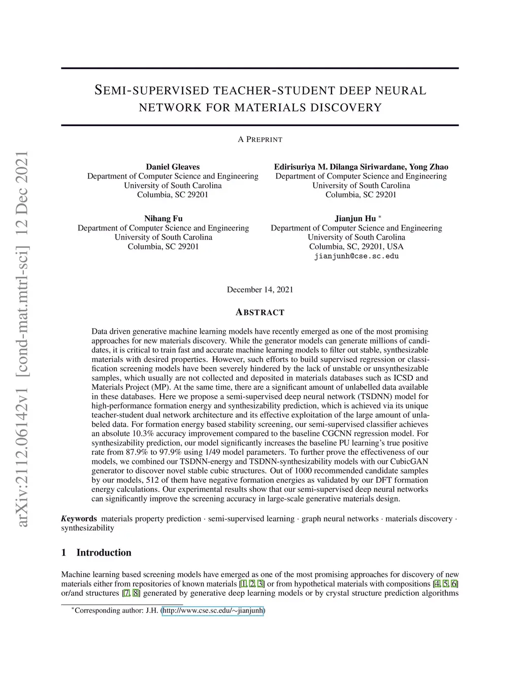 Semi-supervised teacher-student deep neural network for materials