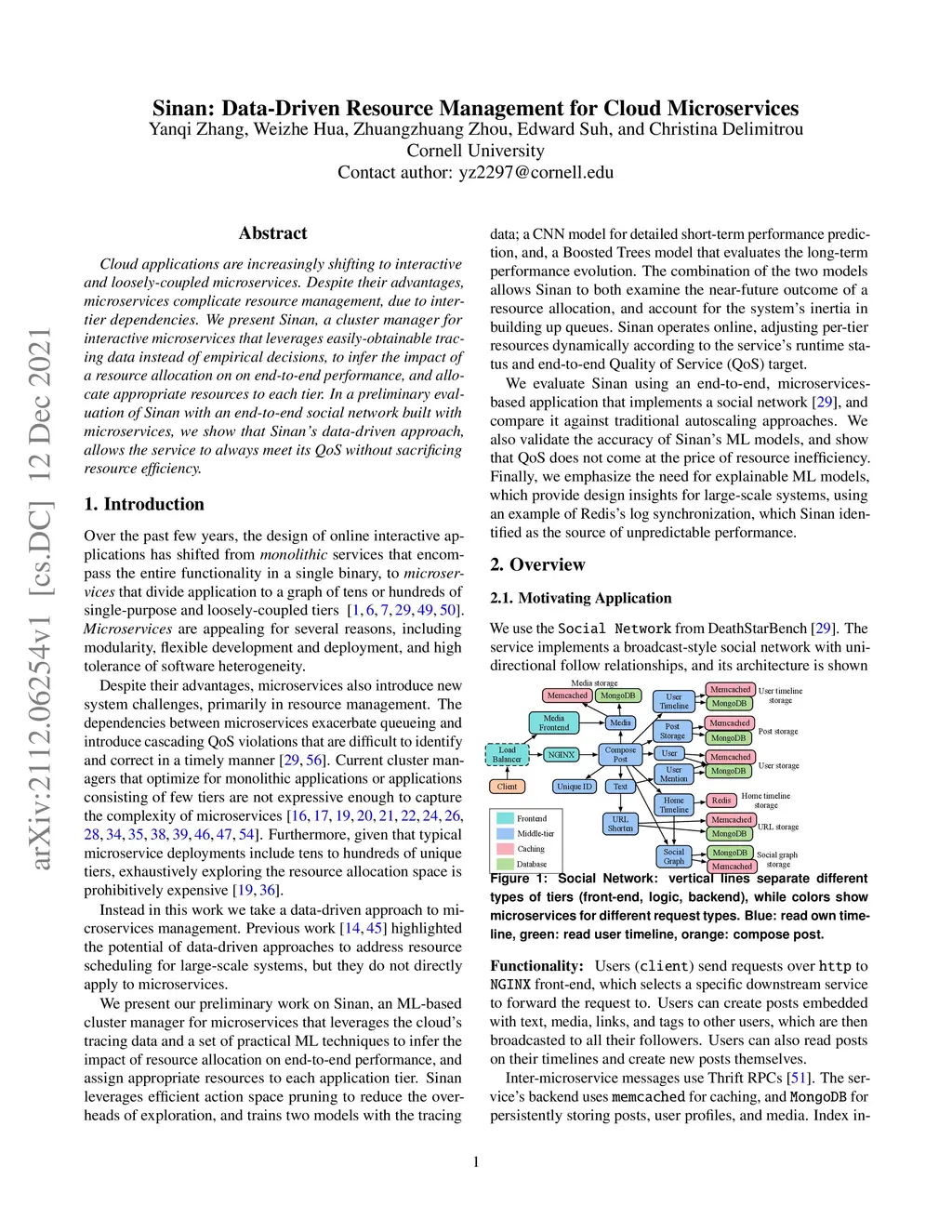 Sinan: Data Driven Resource Management for Cloud Microservices