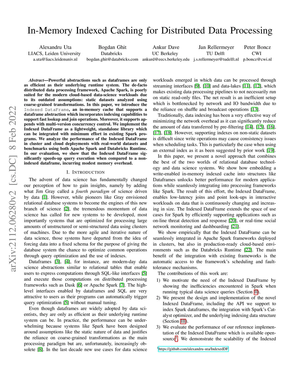 In-Memory Indexed Caching for Distributed Data Processing