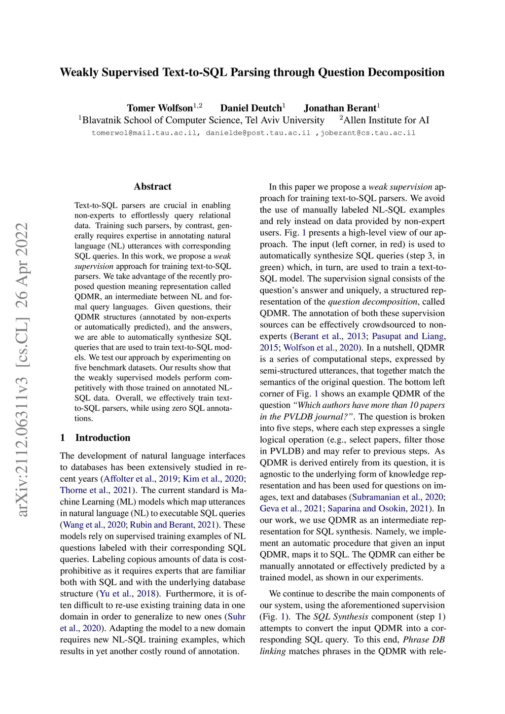 Weakly Supervised Text-to-SQL Parsing through Question Decomposition