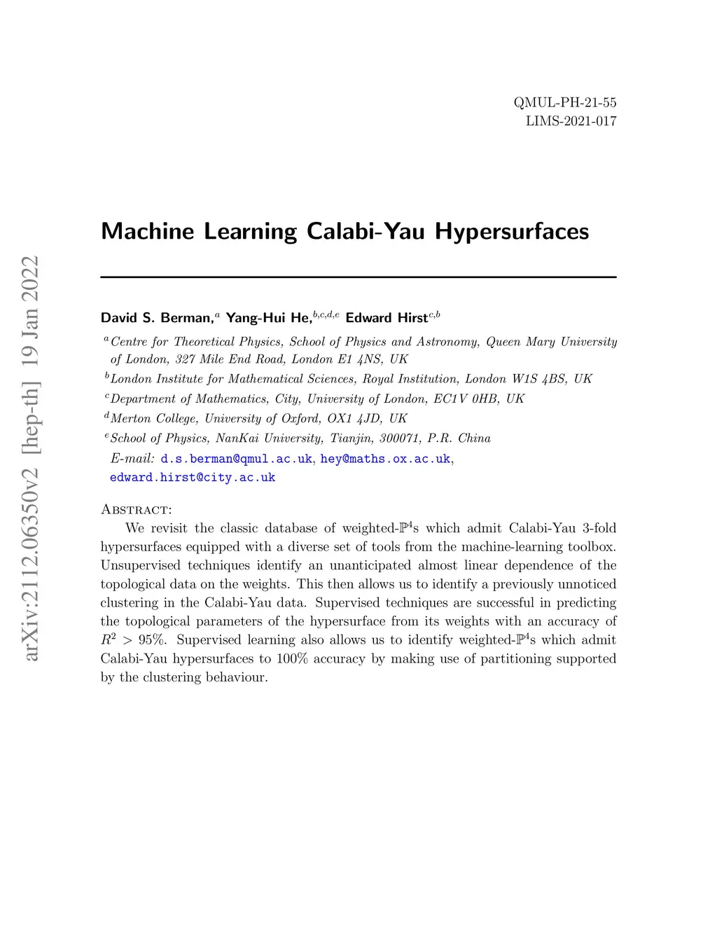 We revisit the classic database of weighted-P4s which admit Calabi-Yau 3-fold hypersurfaces equipped with a diverse set of tools from the machine-learning toolbox. Unsupervised techniques identify an unanticipated almost linear dependence of the topological data on the weights. This then allows us to identify a previously unnoticed clustering in the Calabi-Yau data. Supervised techniques are successful in predicting the topological parameters of the hypersurface from its weights with an accuracy of R^2 > 95%. Supervised learning also allows us to identify weighted-P4s which admit Calabi-Yau hypersurfaces to 100% accuracy by making use of partitioning supported by the clustering behaviour.