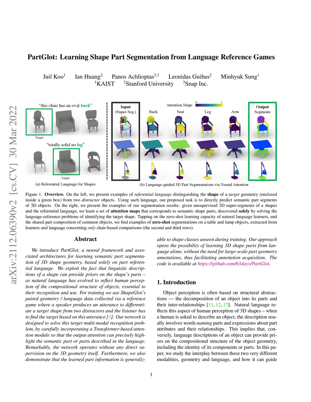 PartGlot: Learning Shape Part Segmentation from Language Reference Games