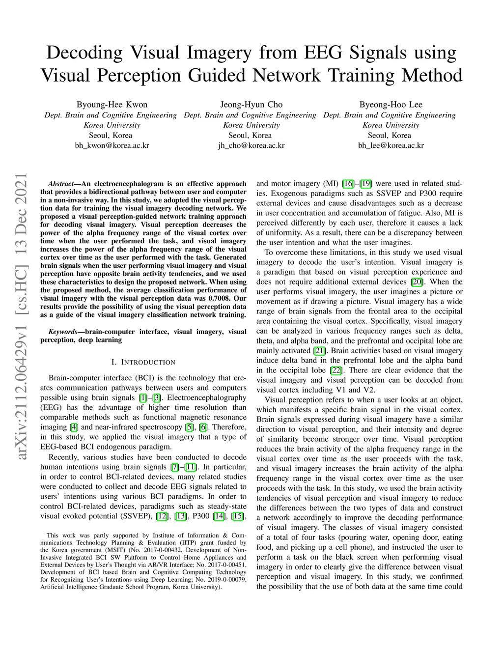 Decoding Visual Imagery from EEG Signals using Visual Perception Guided
