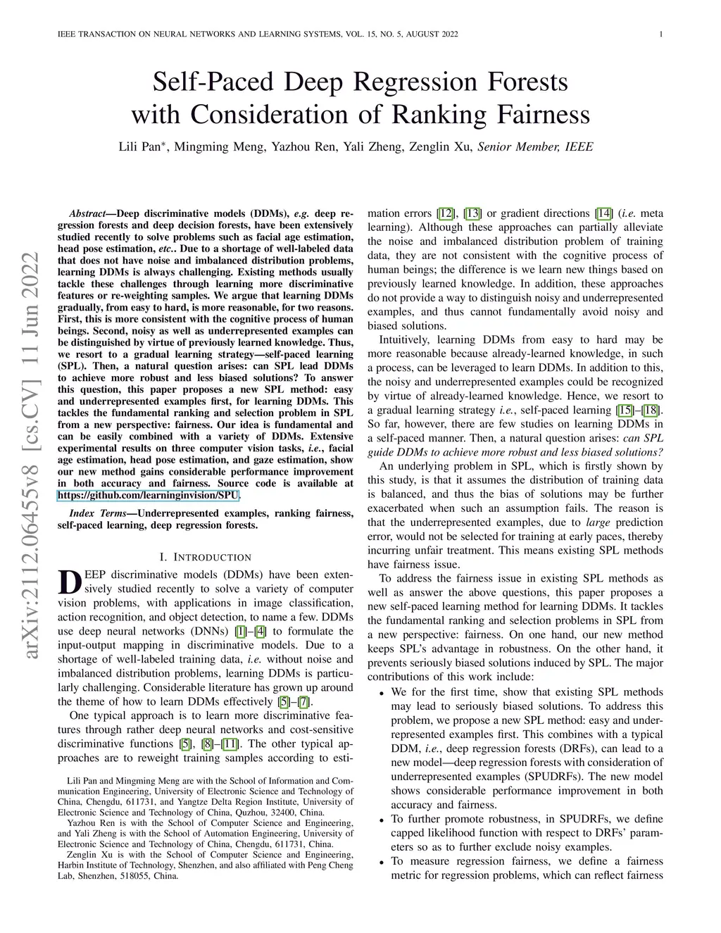 Deep discriminative models (DDMs), e.g. deep regression forests and deep decision forests, have been extensively studied recently to solve problems such as facial age estimation, head pose estimation, etc.. Due to a shortage of well-labeled data that does not have noise and imbalanced distribution problems, learning DDMs is always challenging. Existing methods usually tackle these challenges through learning more discriminative features or re-weighting samples. We argue that learning DDMs gradually, from easy to hard, is more reasonable, for two reasons. First, this is more consistent with the cognitive process of human beings. Second, noisy as well as underrepresented examples can be distinguished by virtue of previously learned knowledge. Thus, we resort to a gradual learning strategy -- self-paced learning (SPL). Then, a natural question arises: can SPL lead DDMs to achieve more robust and less biased solutions? To answer this question, this paper proposes a new SPL method: easy and underrepresented examples first, for learning DDMs. This tackles the fundamental ranking and selection problem in SPL from a new perspective: fairness. Our idea is fundamental and can be easily combined with a variety of DDMs. Extensive experimental results on three computer vision tasks, i.e., facial age estimation, head pose estimation, and gaze estimation, show our new method gains considerable performance improvement in both accuracy and fairness. Source code is available at https://github.com/learninginvision/SPU.