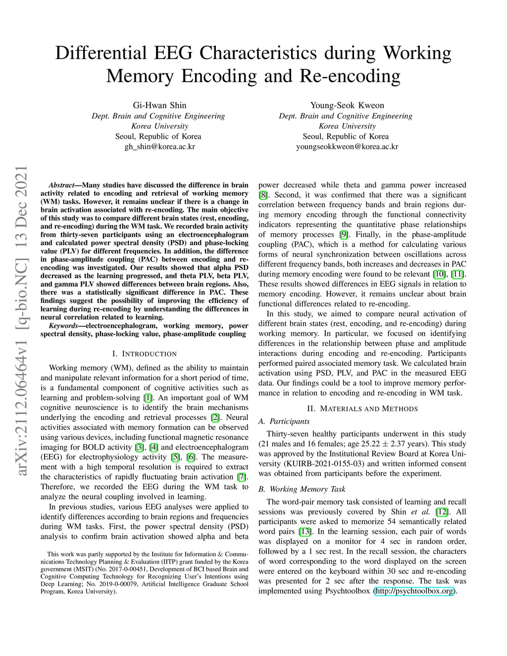 Differential EEG Characteristics during Working Memory Encoding and
