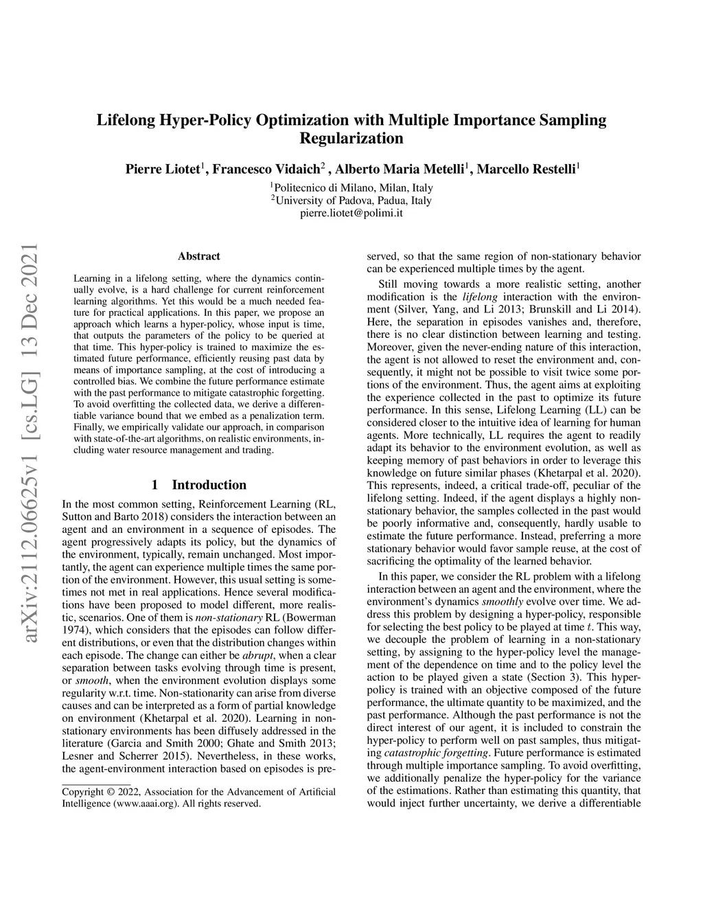 Lifelong Hyper-Policy Optimization with Multiple Importance Sampling