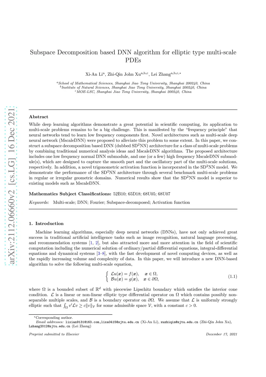 Subspace Decomposition based DNN algorithm for elliptic-type multi-scale