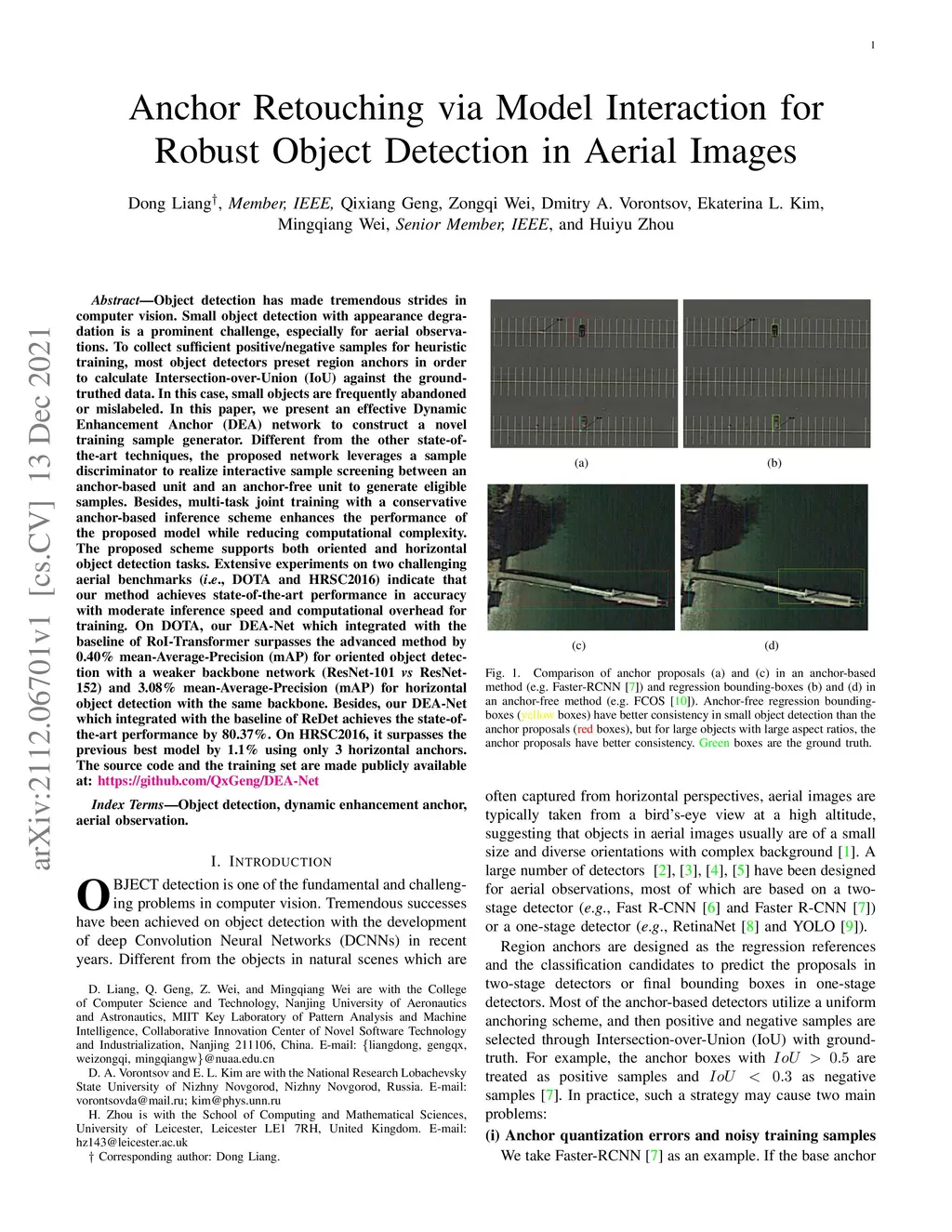 Object detection has made tremendous strides in computer vision. Small object detection with appearance degradation is a prominent challenge, especially for aerial observations. To collect sufficient positive/negative samples for heuristic training, most object detectors preset region anchors in order to calculate Intersection-over-Union (IoU) against the ground-truthed data. In this case, small objects are frequently abandoned or mislabeled. In this paper, we present an effective Dynamic Enhancement Anchor (DEA) network to construct a novel training sample generator. Different from the other state-of-the-art techniques, the proposed network leverages a sample discriminator to realize interactive sample screening between an anchor-based unit and an anchor-free unit to generate eligible samples. Besides, multi-task joint training with a conservative anchor-based inference scheme enhances the performance of the proposed model while reducing computational complexity. The proposed scheme supports both oriented and horizontal object detection tasks. Extensive experiments on two challenging aerial benchmarks (i.e., DOTA and HRSC2016) indicate that our method achieves state-of-the-art performance in accuracy with moderate inference speed and computational overhead for training. On DOTA, our DEA-Net which integrated with the baseline of RoI-Transformer surpasses the advanced method by 0.40% mean-Average-Precision (mAP) for oriented object detection with a weaker backbone network (ResNet-101 vs ResNet-152) and 3.08% mean-Average-Precision (mAP) for horizontal object detection with the same backbone. Besides, our DEA-Net which integrated with the baseline of ReDet achieves the state-of-the-art performance by 80.37%. On HRSC2016, it surpasses the previous best model by 1.1% using only 3 horizontal anchors.