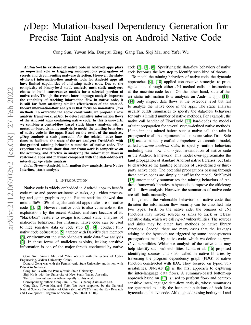 The existence of native code in Android apps plays an important role in triggering inconspicuous propagation of secrets and circumventing malware detection. However, the state-of-the-art information-flow analysis tools for Android apps all have limited capabilities of analyzing native code. Due to the complexity of binary-level static analysis, most static analyzers choose to build conservative models for a selected portion of native code. Though the recent inter-language analysis improves the capability of tracking information flow in native code, it is still far from attaining similar effectiveness of the state-of-the-art information-flow analyzers that focus on non-native Java methods. To overcome the above constraints, we propose a new analysis framework, Dep, to detect sensitive information flows of the Android apps containing native code. In this framework, we combine a control-flow based static binary analysis with a mutation-based dynamic analysis to model the tainting behaviors of native code in the apps. Based on the result of the analyses, Dep conducts a stub generation for the related native functions to facilitate the state-of-the-art analyzer DroidSafe with fine-grained tainting behavior summaries of native code. The experimental results show that our framework is competitive on the accuracy, and effective in analyzing the information flows in real-world apps and malware compared with the state-of-the-art inter-language static analysis.