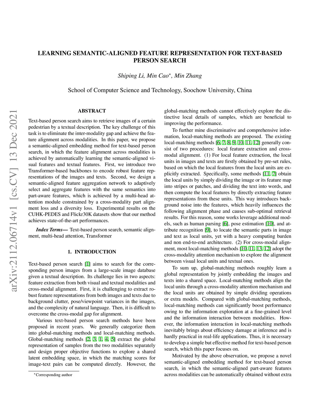 Learning Semantic-Aligned Feature Representation for Text-based Person