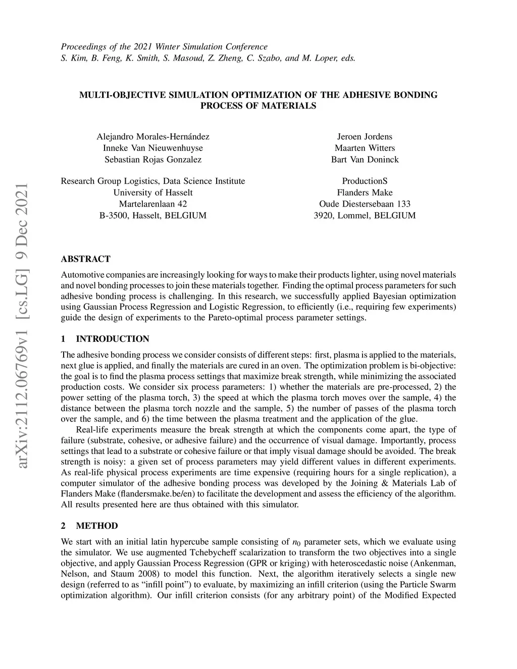 Multi-objective simulation optimization of the adhesive bonding process