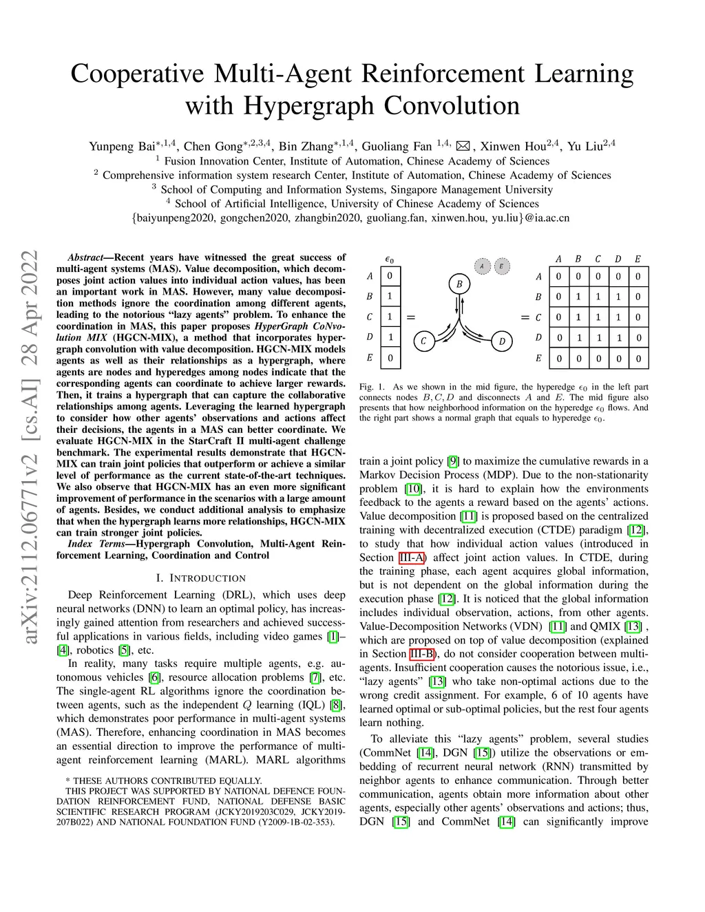 Recent years have witnessed the great success of multi-agent systems (MAS). Value decomposition, which decomposes joint action values into individual action values, has been an important work in MAS. However, many value decomposition methods ignore the coordination among different agents, leading to the notorious "lazy agents" problem. To enhance the coordination in MAS, this paper proposes HyperGraph CoNvolution MIX (HGCN-MIX), a method that incorporates hypergraph convolution with value decomposition. HGCN-MIX models agents as well as their relationships as a hypergraph, where agents are nodes and hyperedges among nodes indicate that the corresponding agents can coordinate to achieve larger rewards. Then, it trains a hypergraph that can capture the collaborative relationships among agents. Leveraging the learned hypergraph to consider how other agents' observations and actions affect their decisions, the agents in a MAS can better coordinate. We evaluate HGCN-MIX in the StarCraft II multi-agent challenge benchmark. The experimental results demonstrate that HGCN-MIX can train joint policies that outperform or achieve a similar level of performance as the current state-of-the-art techniques. We also observe that HGCN-MIX has an even more significant improvement of performance in the scenarios with a large amount of agents. Besides, we conduct additional analysis to emphasize that when the hypergraph learns more relationships, HGCN-MIX can train stronger joint policies.