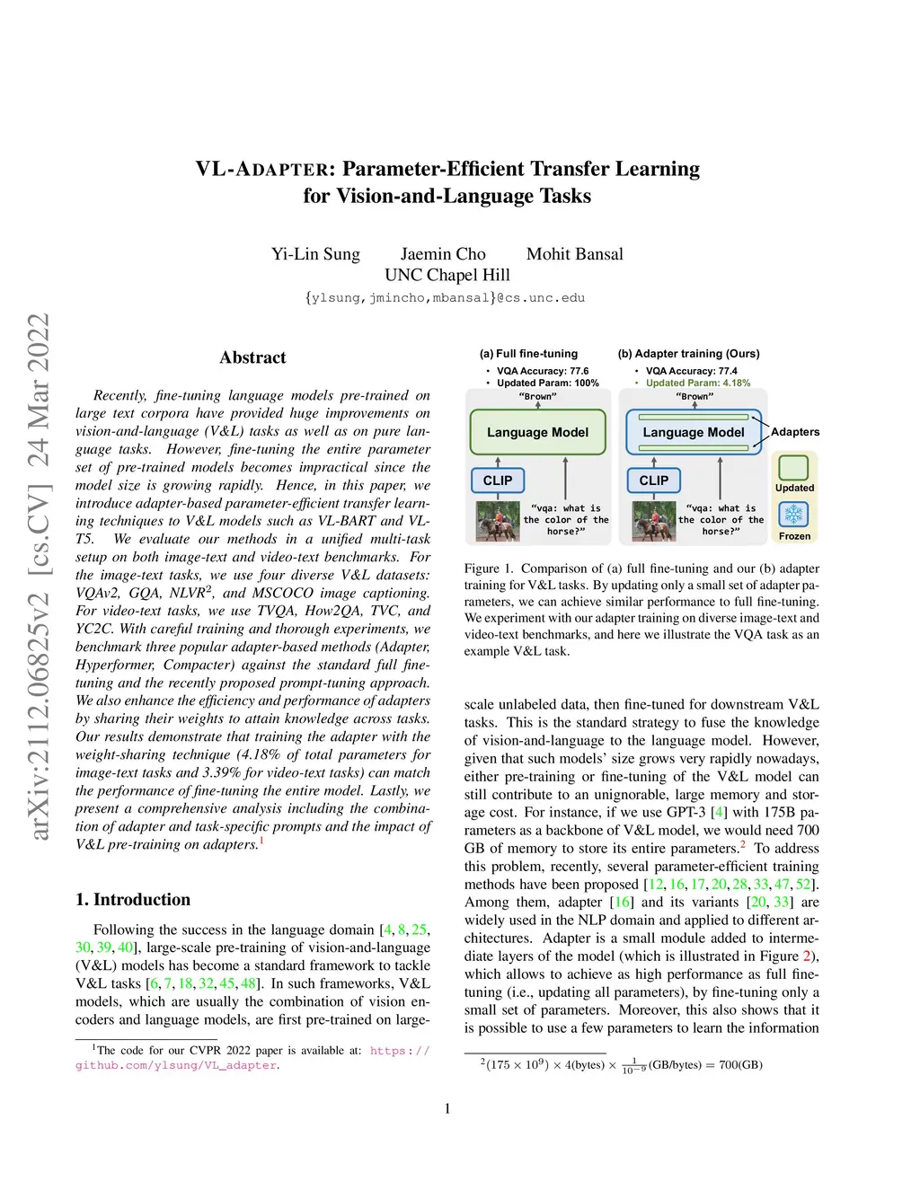 VL-Adapter: Parameter-Efficient Transfer Learning for