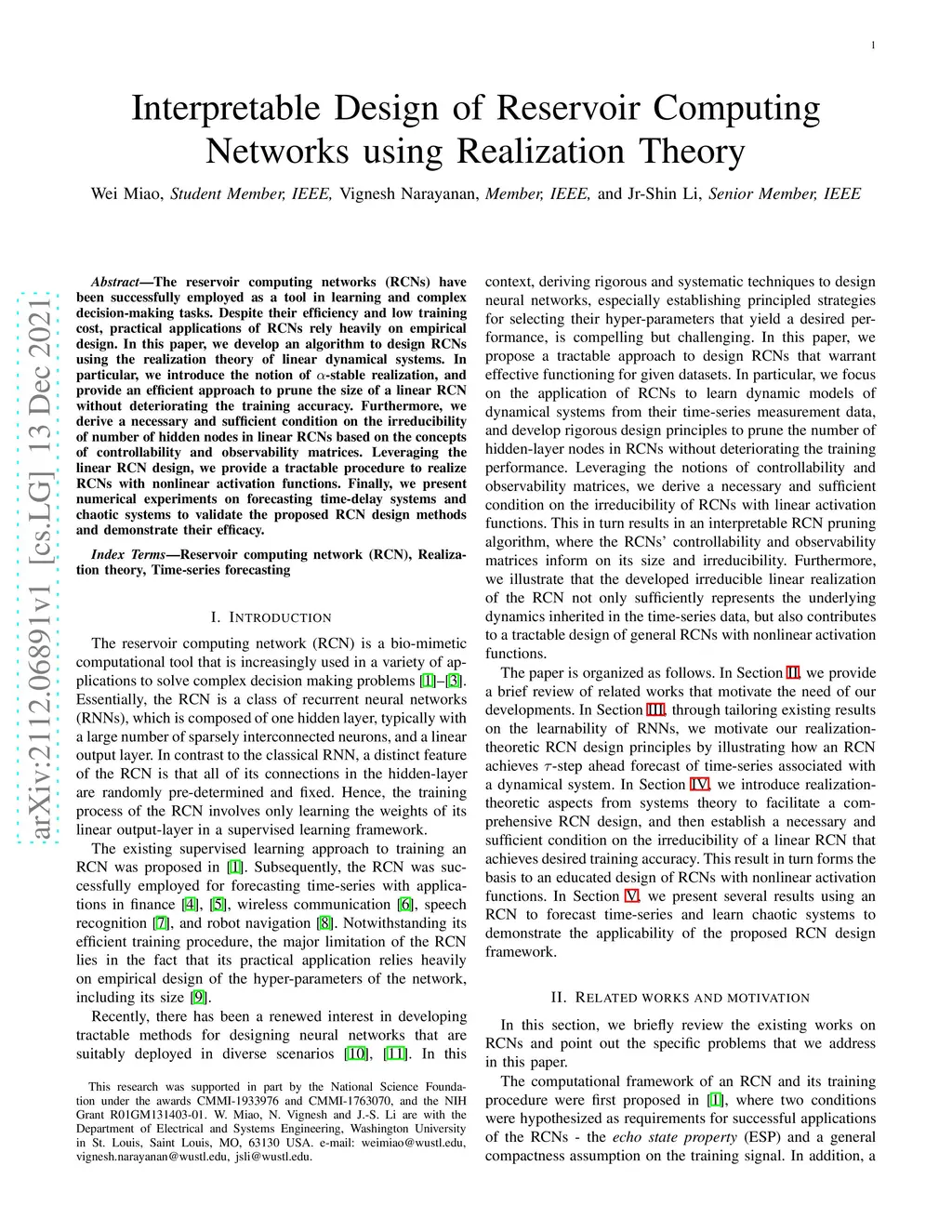 Interpretable Design of Reservoir Computing Networks using Realization