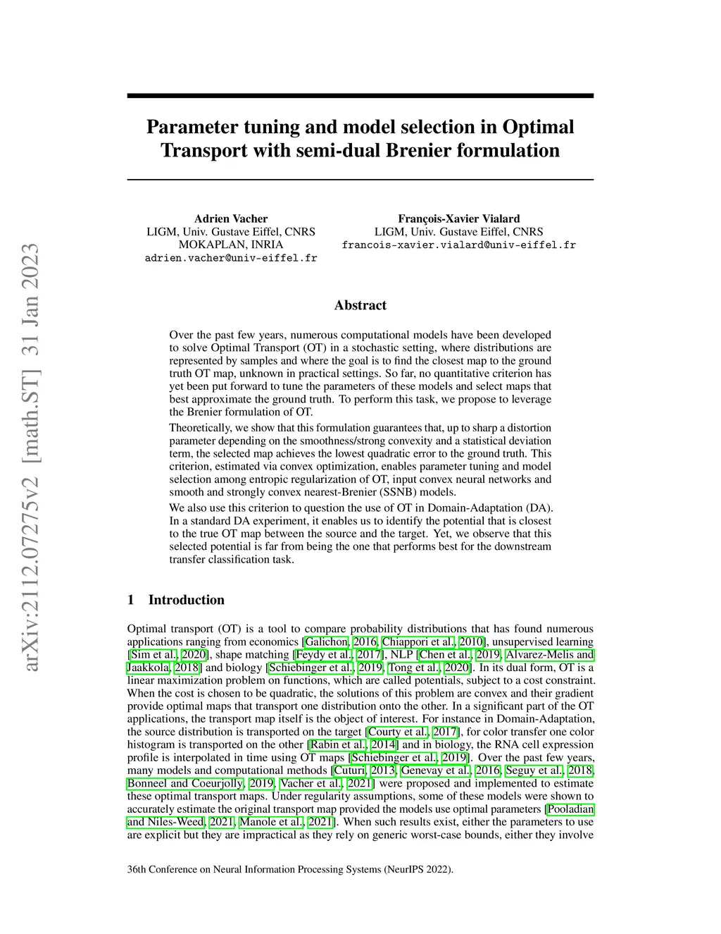 Over the past few years, numerous computational models have been developed to solve Optimal Transport (OT) in a stochastic setting, where distributions are represented by samples and where the goal is to find the closest map to the ground truth OT map, unknown in practical settings. So far, no quantitative criterion has yet been put forward to tune the parameters of these models and select maps that best approximate the ground truth. To perform this task, we propose to leverage the Brenier formulation of OT.Theoretically, we show that this formulation guarantees that, up to sharp a distortion parameter depending on the smoothness/strong convexity and a statistical deviation term, the selected map achieves the lowest quadratic error to the ground truth. This criterion, estimated via convex optimization, enables parameter tuning and model selection among entropic regularization of OT, input convex neural networks and smooth and strongly convex nearest-Brenier (SSNB) models.We also use this criterion to question the use of OT in Domain-Adaptation (DA). In a standard DA experiment, it enables us to identify the potential that is closest to the true OT map between the source and the target. Yet, we observe that this selected potential is far from being the one that performs best for the downstream transfer classification task.