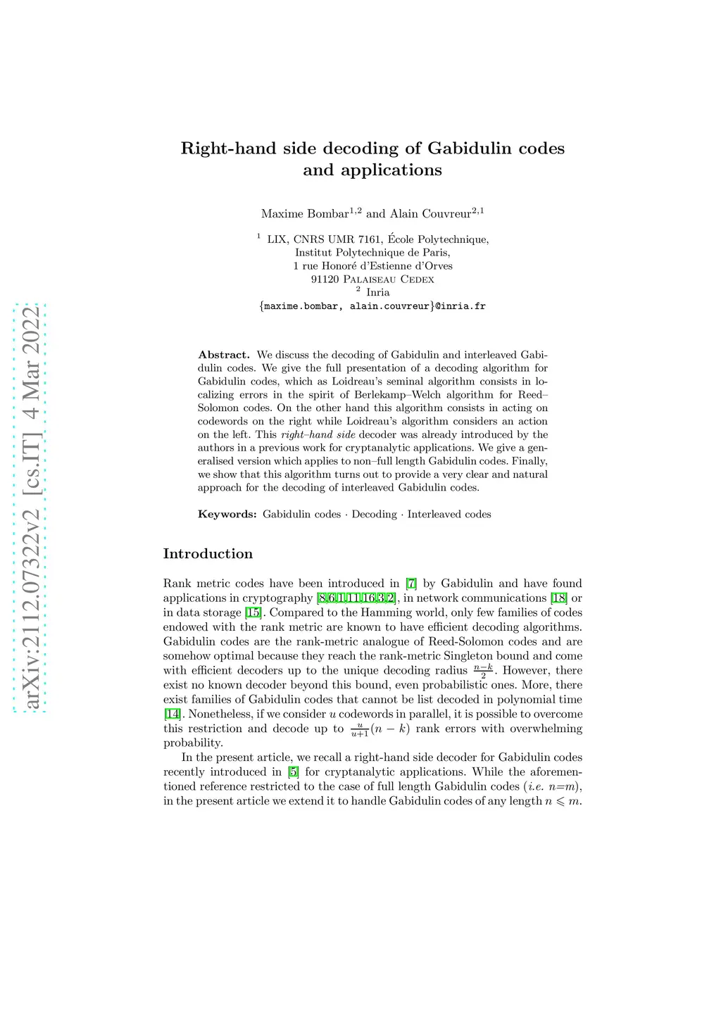 Right-hand side decoding of Gabidulin code and applications