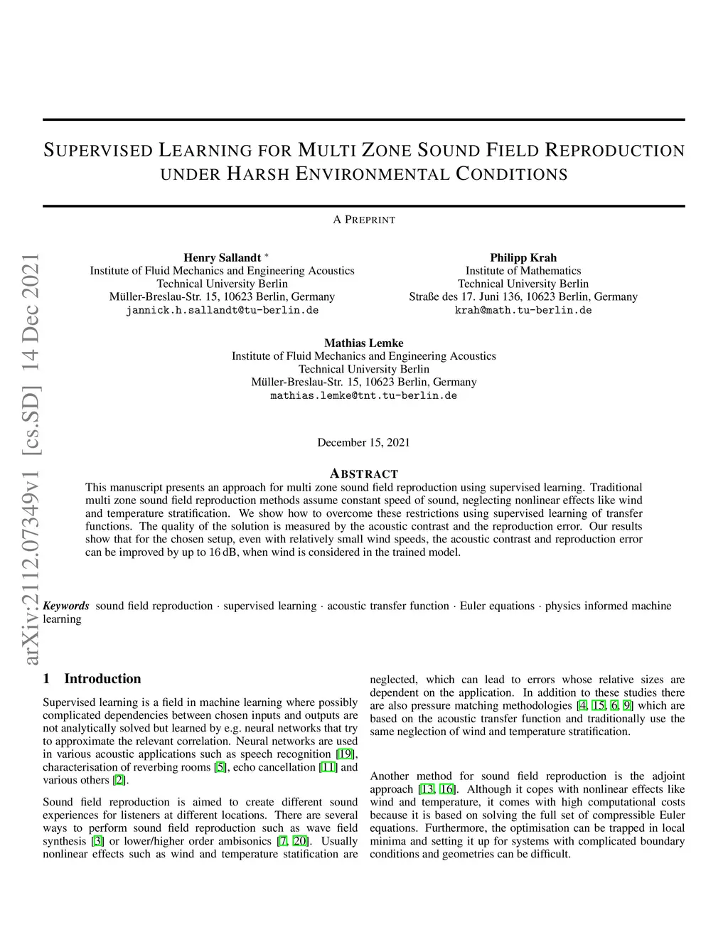 This manuscript presents an approach for multi zone sound field reproduction using supervised learning. Traditional multi zone sound field reproduction methods assume constant speed of sound, neglecting nonlinear effects like wind and temperature stratification. We show how to overcome these restrictions using supervised learning of transfer functions. The quality of the solution is measured by the acoustic contrast and the reproduction error. Our results show that for the chosen setup, even with relatively small wind speeds, the acoustic contrast and reproduction error can be improved by up to 16 dB, when wind is considered in the trained model.