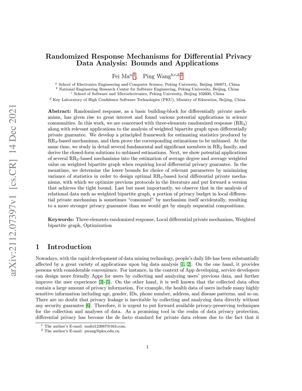 Randomized Response Mechanisms for Differential Privacy Data Analysis: