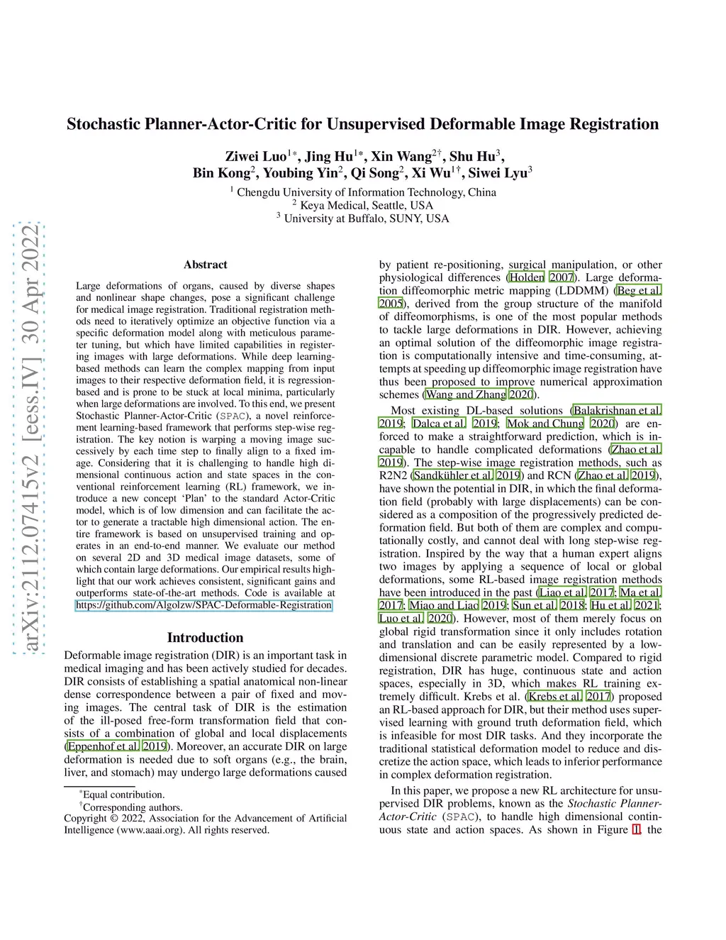 Stochastic Planner-Actor-Critic for Unsupervised Deformable Image