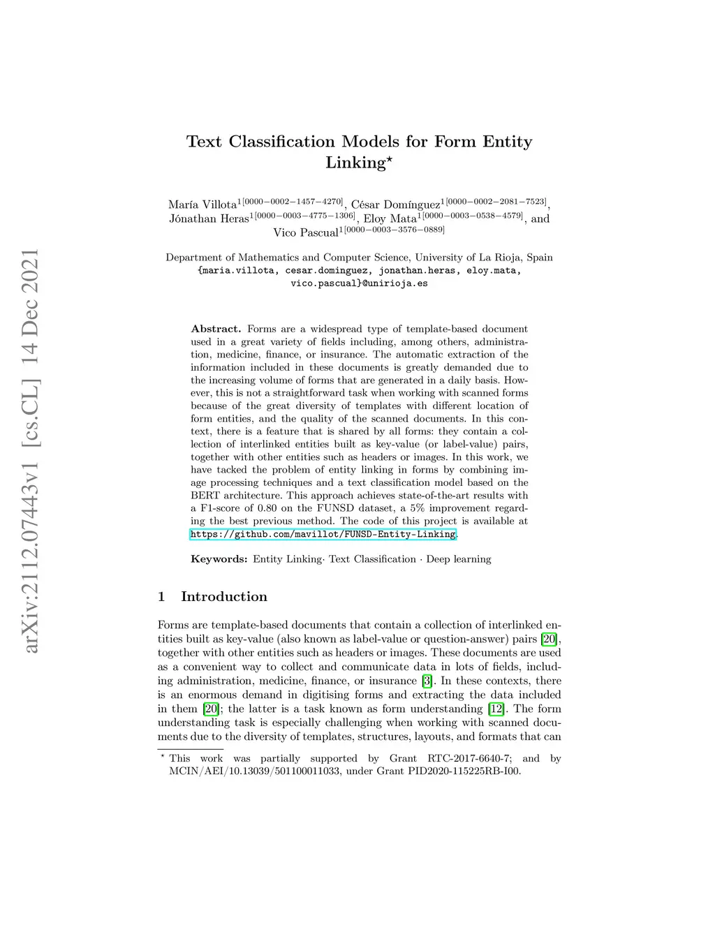 Text Classification Models for Form Entity Linking