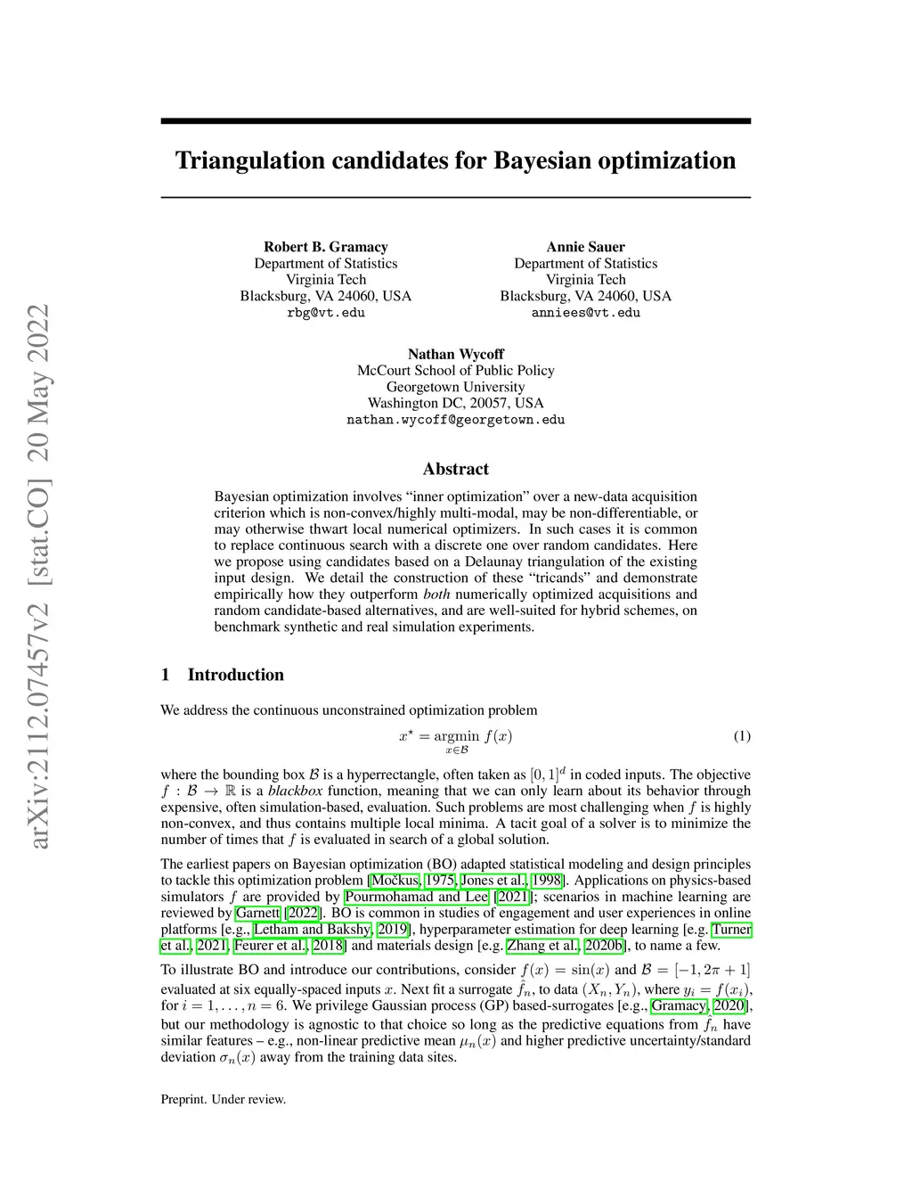 Triangulation candidates for Bayesian optimization
