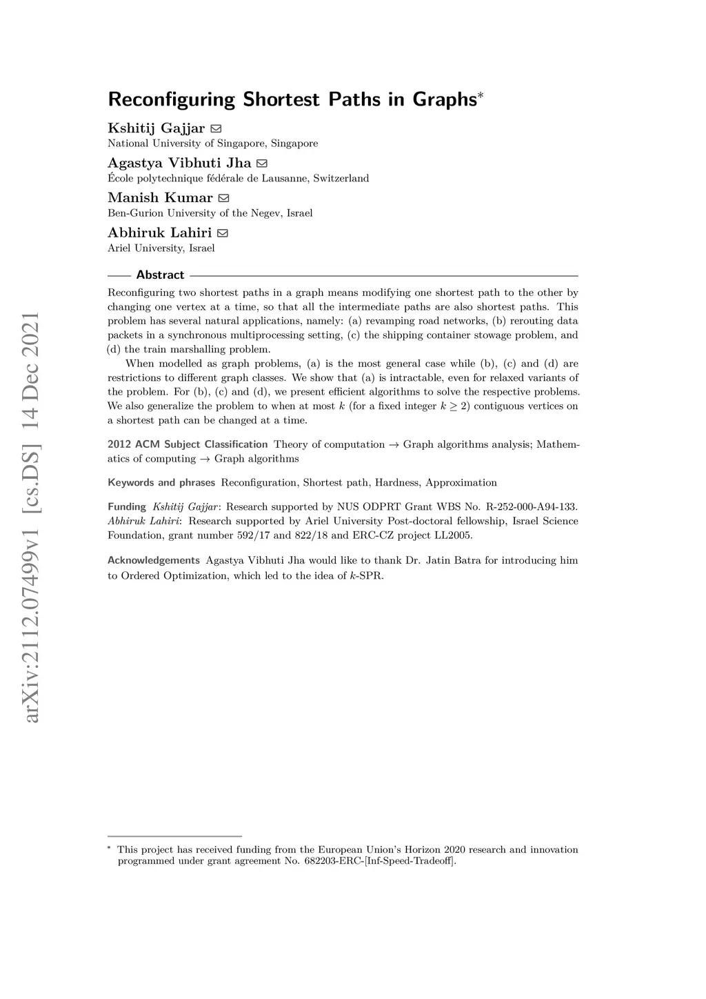 Reconfiguring two shortest paths in a graph means modifying one shortest path to the other by changing one vertex at a time so that all the intermediate paths are also shortest paths. This problem has several natural applications, namely: (a) revamping road networks, (b) rerouting data packets in synchronous multiprocessing setting, (c) the shipping container stowage problem, and (d) the train marshalling problem. When modelled as graph problems, (a) is the most general case while (b), (c) and (d) are restrictions to different graph classes. We show that (a) is intractable, even for relaxed variants of the problem. For (b), (c) and (d), we present efficient algorithms to solve the respective problems. We also generalize the problem to when at most (for a fixed integer ) contiguous vertices on a shortest path can be changed at a time.