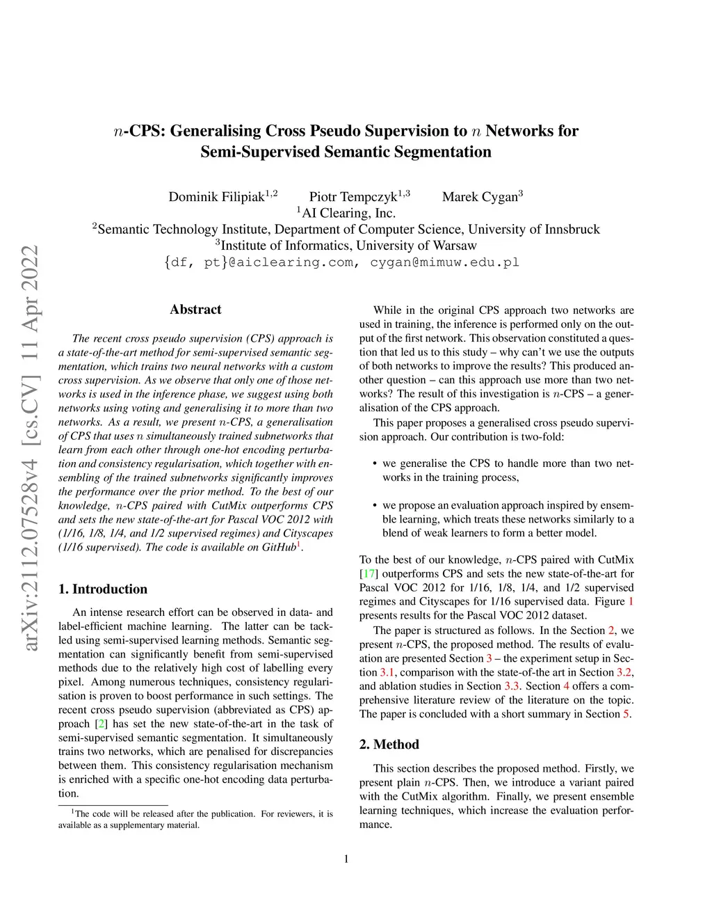 n-CPS: Generalising Cross Pseudo Supervision to n Networks for