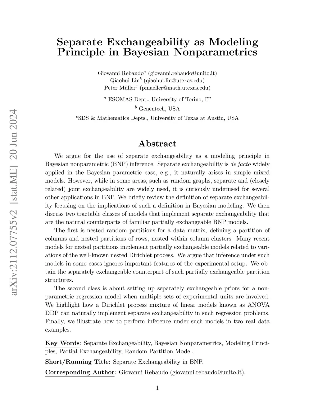 Separate Exchangeability as Modeling Principle in Bayesian