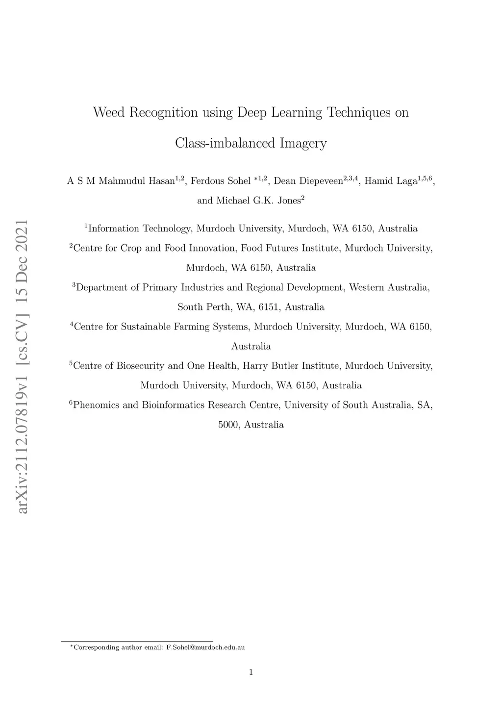 Weed Recognition using Deep Learning Techniques on Class-imbalanced