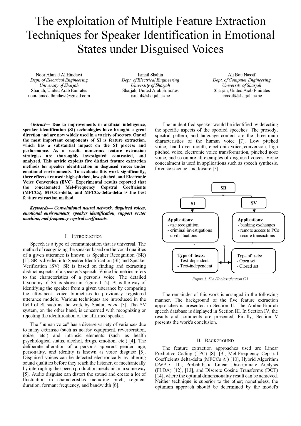 The exploitation of Multiple Feature Extraction Techniques for Speaker