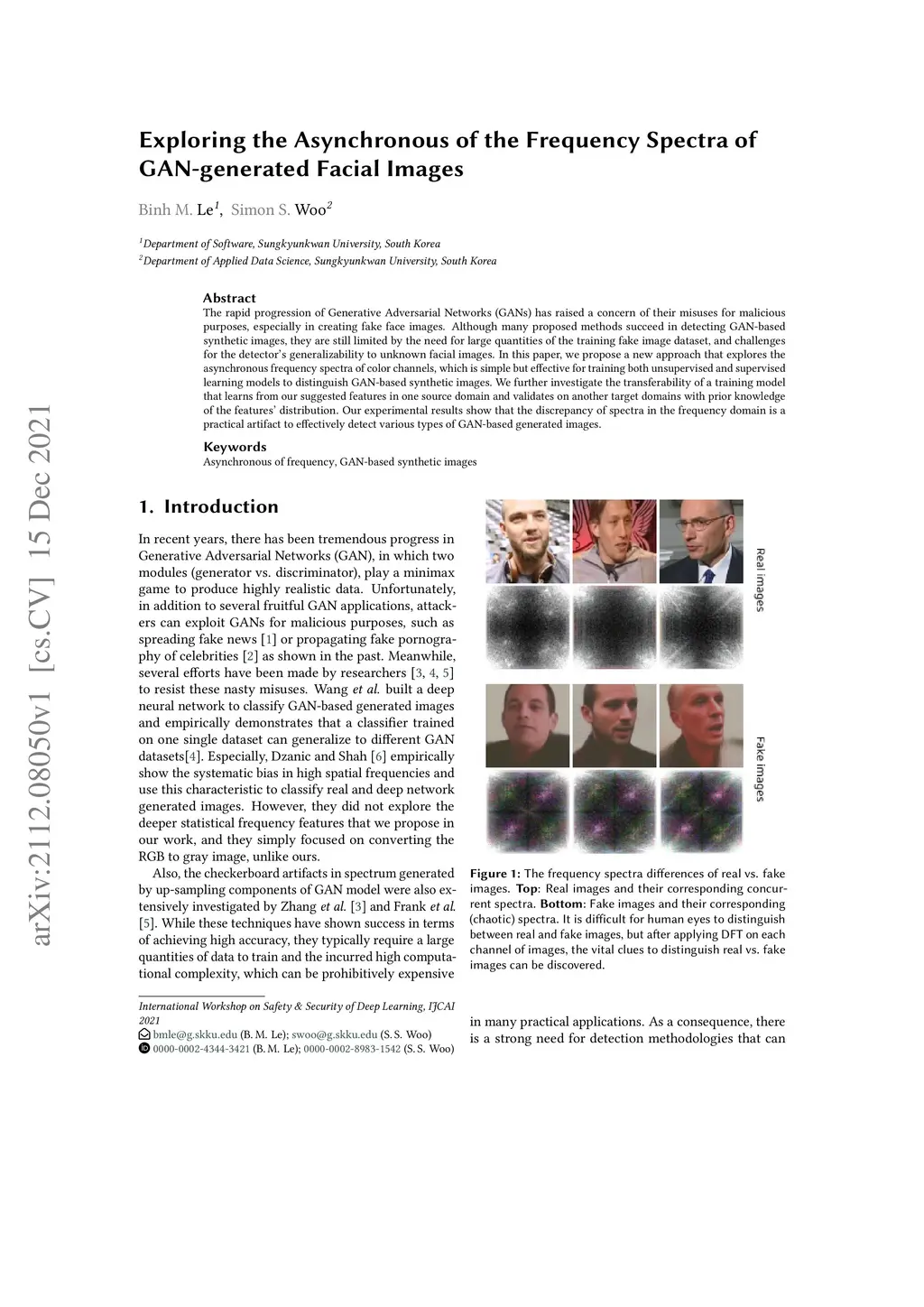 The rapid progression of Generative Adversarial Networks (GANs) has raised a concern of their misuse for malicious purposes, especially in creating fake face images. Although many proposed methods succeed in detecting GAN-based synthetic images, they are still limited by the need for large quantities of the training fake image dataset and challenges for the detector's generalizability to unknown facial images. In this paper, we propose a new approach that explores the asynchronous frequency spectra of color channels, which is simple but effective for training both unsupervised and supervised learning models to distinguish GAN-based synthetic images. We further investigate the transferability of a training model that learns from our suggested features in one source domain and validates on another target domains with prior knowledge of the features' distribution. Our experimental results show that the discrepancy of spectra in the frequency domain is a practical artifact to effectively detect various types of GAN-based generated images.