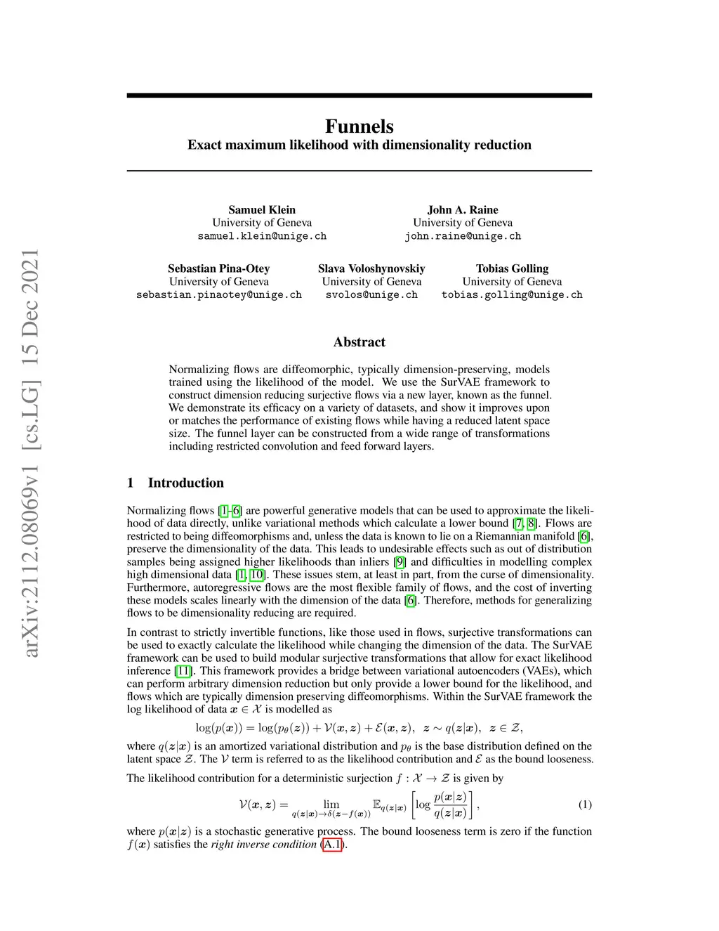 Funnels: Exact maximum likelihood with dimensionality reduction