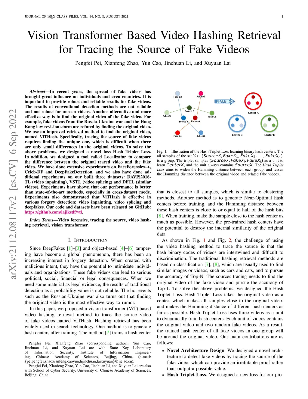 In recent years, the spread of fake videos has brought great influence on individuals and even countries. It is important to provide robust and reliable results for fake videos. The results of conventional detection methods are not reliable and not robust for unseen videos. Another alternative and more effective way is to find the original video of the fake video. For example, fake videos from the Russia-Ukraine war and the Hong Kong law revision storm are refuted by finding the original video. We use an improved retrieval method to find the original video, named ViTHash. Specifically, tracing the source of fake videos requires finding the unique one, which is difficult when there are only small differences in the original videos. To solve the above problems, we designed a novel loss Hash Triplet Loss. In addition, we designed a tool called Localizator to compare the difference between the original traced video and the fake video. We have done extensive experiments on FaceForensics++, Celeb-DF and DeepFakeDetection, and we also have done additional experiments on our built three datasets: DAVIS2016-TL (video inpainting), VSTL (video splicing) and DFTL (similar videos). Experiments have shown that our performance is better than state-of-the-art methods, especially in cross-dataset mode. Experiments also demonstrated that ViTHash is effective in various forgery detection: video inpainting, video splicing and deepfakes. Our code and datasets have been released on GitHub: \url{https://github.com/lajlksdf/vtl}.