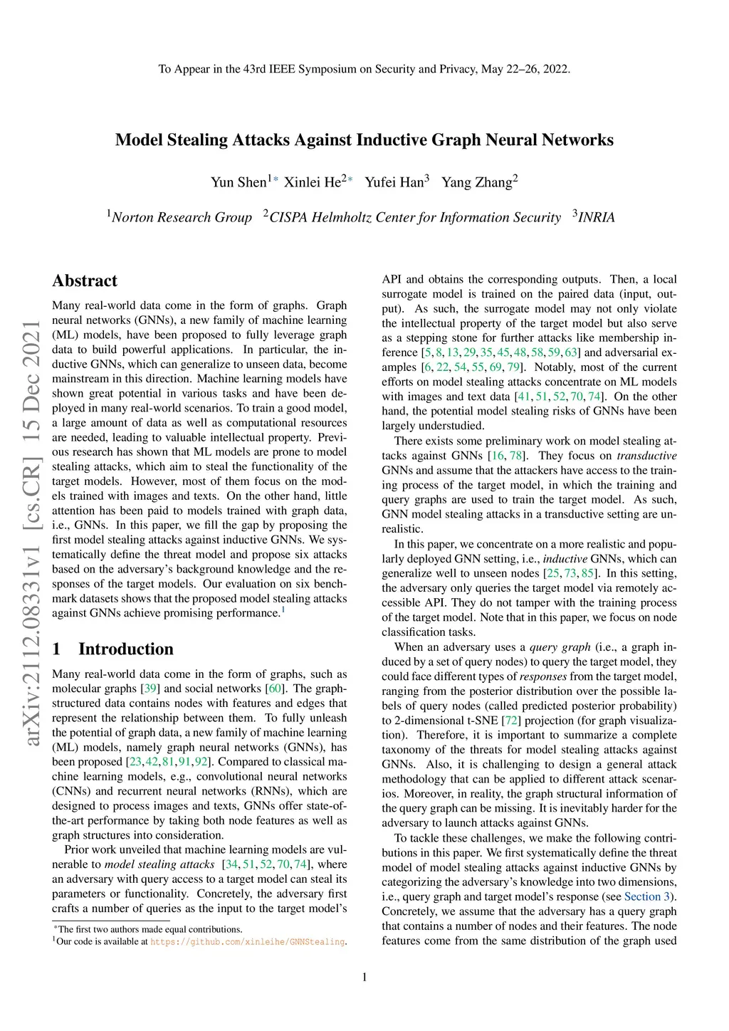 Model Stealing Attacks Against Inductive Graph Neural Networks