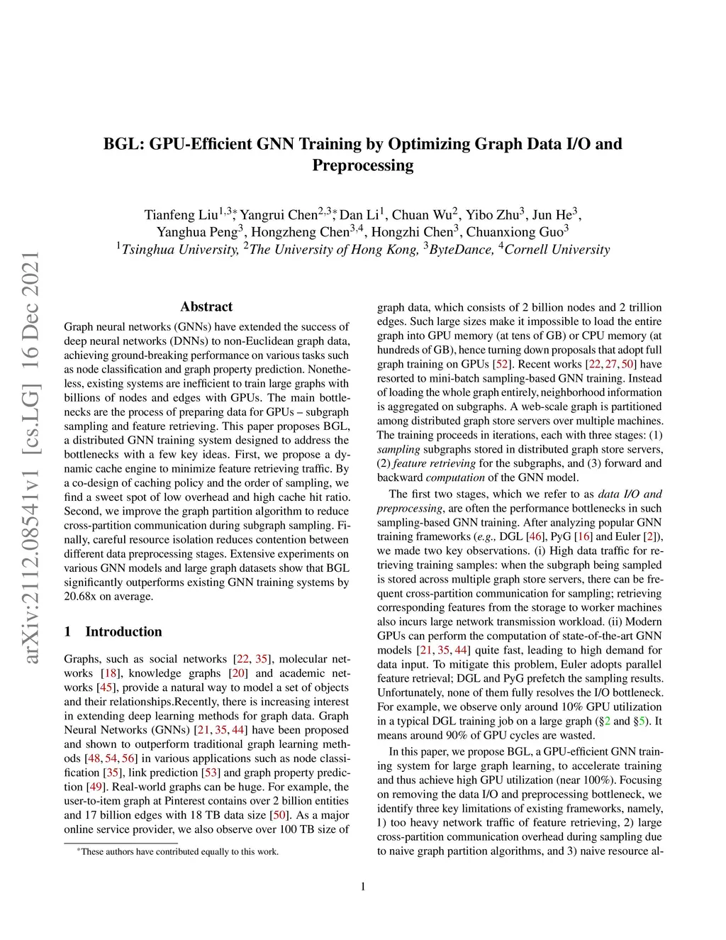 BGL: GPU-Efficient GNN Training by Optimizing Graph Data I/O and