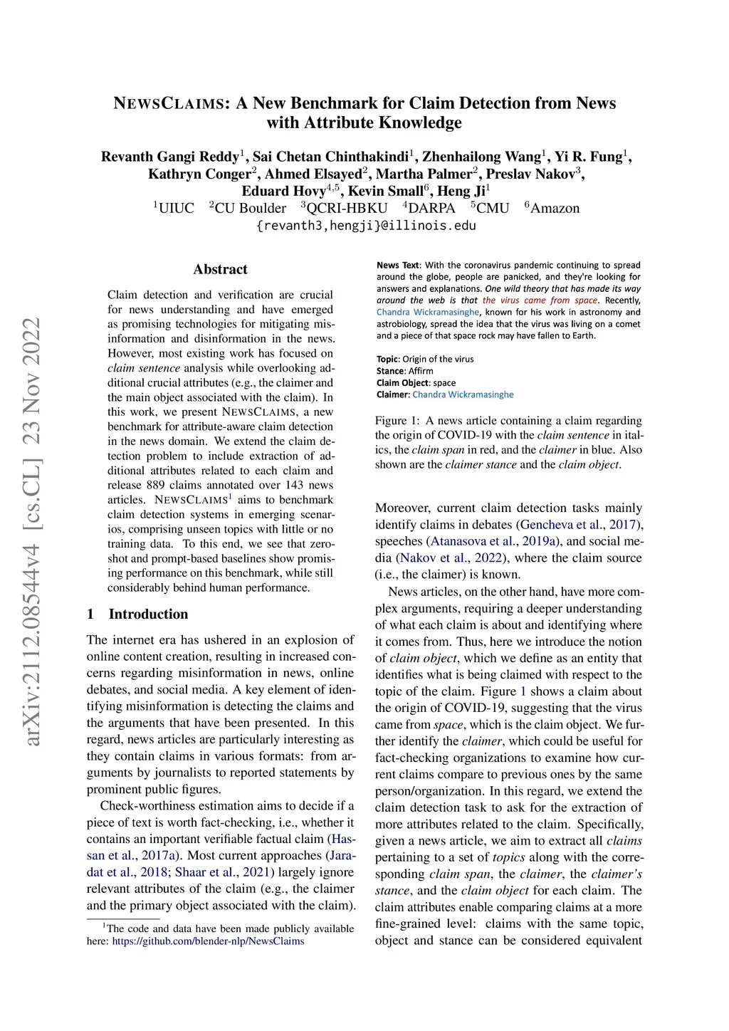NewsClaims: A New Benchmark for Claim Detection from News with