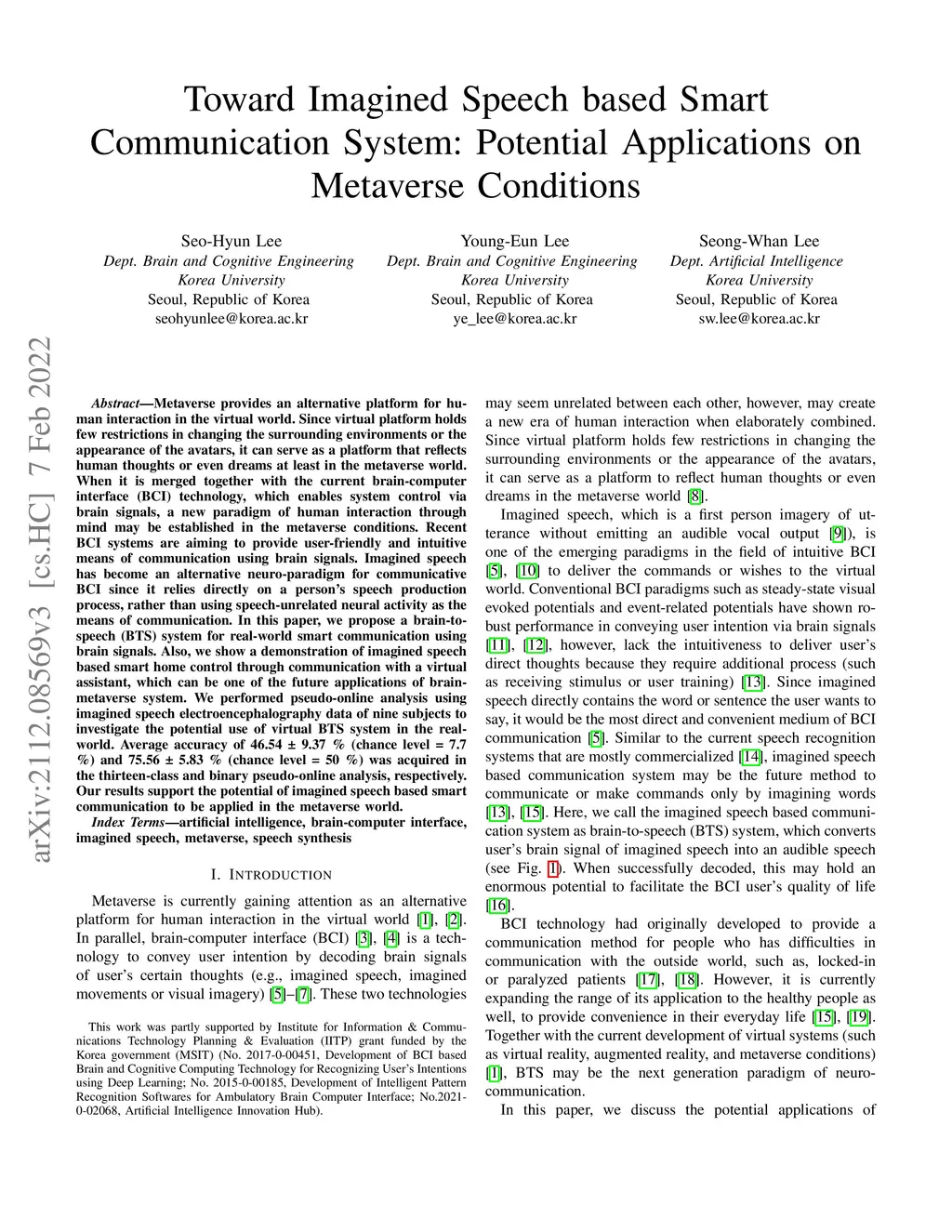 Toward Imagined Speech based Smart Communication System: Potential