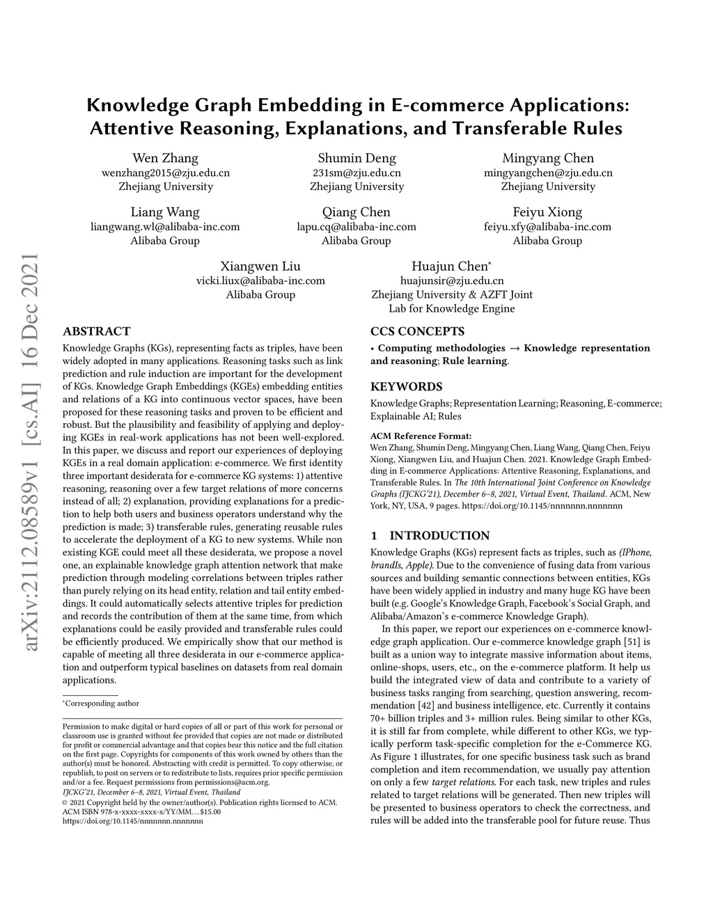 Knowledge Graphs (KGs), representing facts as triples, have been widely adopted in many applications. Reasoning tasks such as link prediction and rule induction are important for the development of KGs. Knowledge Graph Embeddings (KGEs) embedding entities and relations of a KG into continuous vector spaces, have been proposed for these reasoning tasks and proven to be efficient and robust. But the plausibility and feasibility of applying and deploying KGEs in real-work applications has not been well-explored. In this paper, we discuss and report our experiences of deploying KGEs in a real domain application: e-commerce. We first identity three important desiderata for e-commerce KG systems: 1) attentive reasoning, reasoning over a few target relations of more concerns instead of all; 2) explanation, providing explanations for a prediction to help both users and business operators understand why the prediction is made; 3) transferable rules, generating reusable rules to accelerate the deployment of a KG to new systems. While non existing KGE could meet all these desiderata, we propose a novel one, an explainable knowledge graph attention network that make prediction through modeling correlations between triples rather than purely relying on its head entity, relation and tail entity embeddings. It could automatically selects attentive triples for prediction and records the contribution of them at the same time, from which explanations could be easily provided and transferable rules could be efficiently produced. We empirically show that our method is capable of meeting all three desiderata in our e-commerce application and outperform typical baselines on datasets from real domain applications.