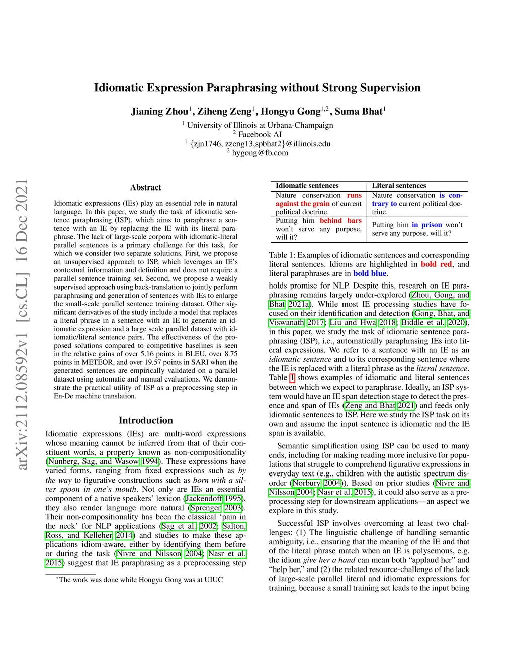 Idiomatic Expression Paraphrasing without Strong Supervision