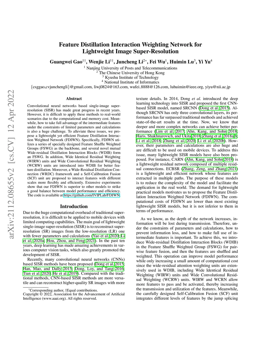 Feature Distillation Interaction Weighting Network for Lightweight Image